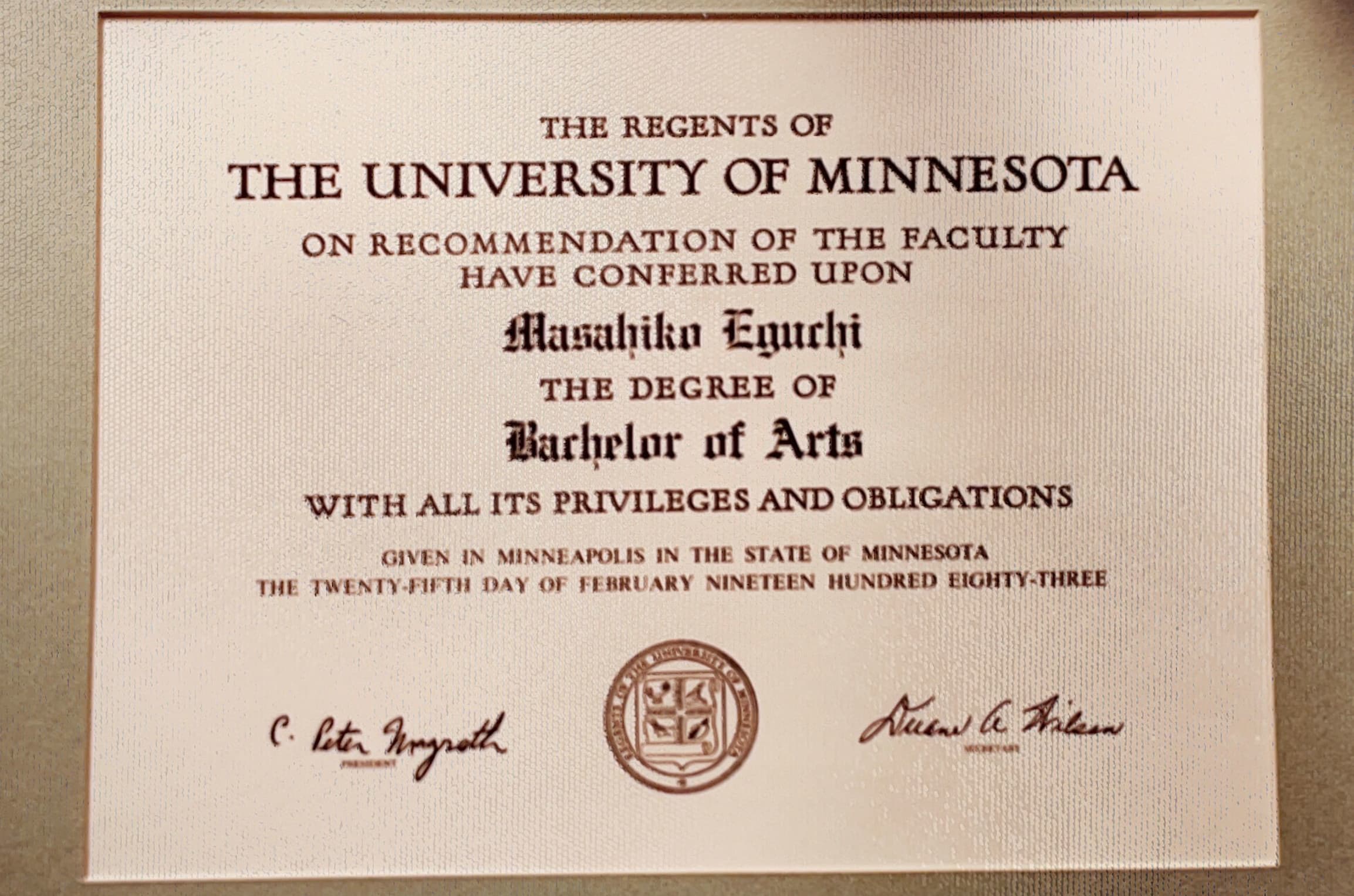 入学後1年半の間に、建築学専攻を何度も申請したが認められませんでした。理由は外国人だから許可しない。取得していた科目と単位数で、アドバイザーから数学もしくは物理の専攻を強く勧められた。また、1979年に新設されたコンピューター・サイエンスもあると説明され迷っていたが、コンピューター・サイエンスは難しいから、数学専攻が良いと断言された。コンピューターのことは何も知らなかったけれど、「難しいから・・・」の発言に奮起し、コンピューター・サイエンス専攻を即断してしまった。その後、5年を費やし、晴れて日本人第1号のコンピューター・サイエンス専攻で卒業した。